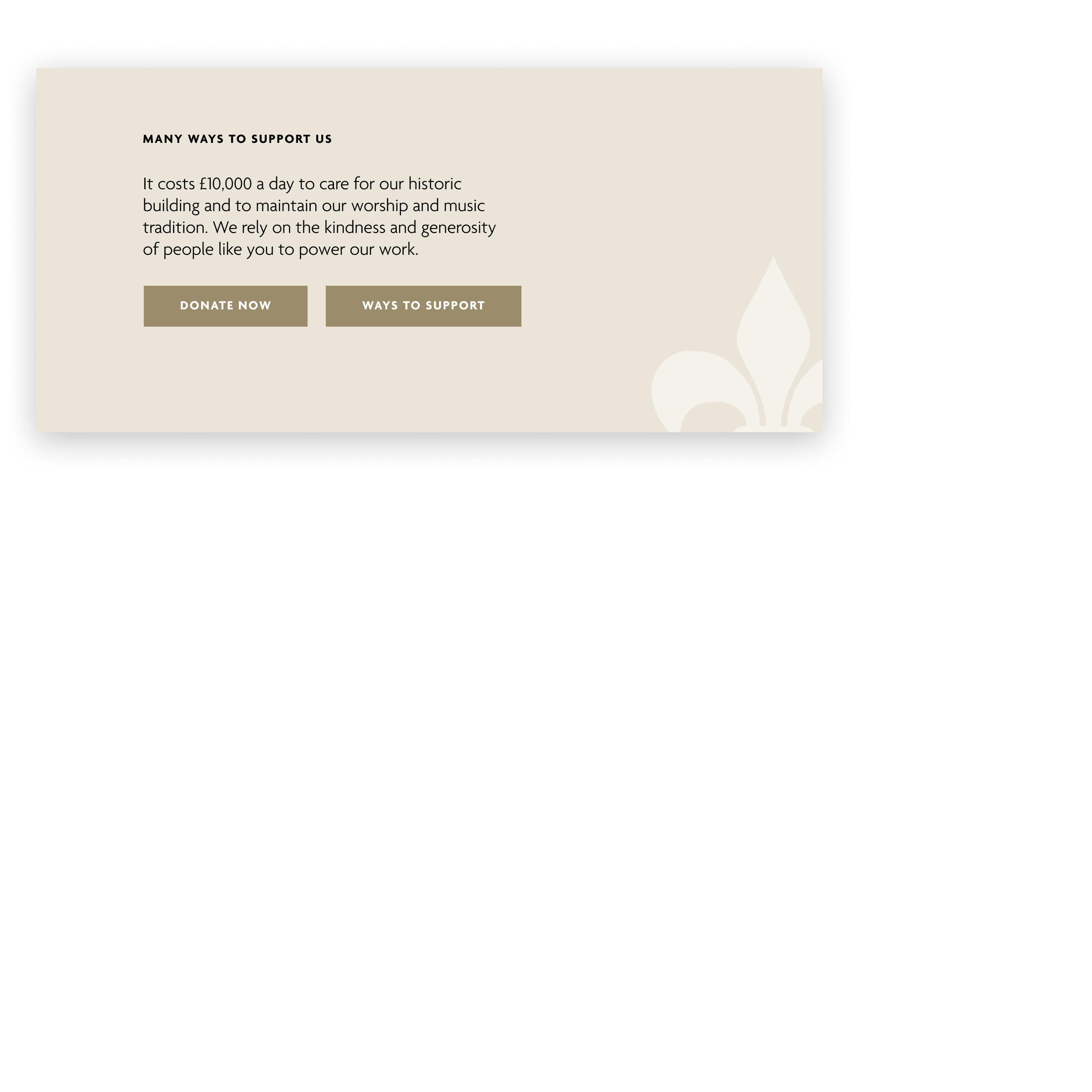 The use of high-quality photography in web design cannot be overstated. For this project, budget restrictions meant we couldn’t commission lots of new images. Instead, we sifted through previous photographic resources to unearth the images we felt captured the cathedral’s architecture and the essence and grandeur of the space. Images that showed people enjoying and interacting with the cathedral were also of utmost importance.
