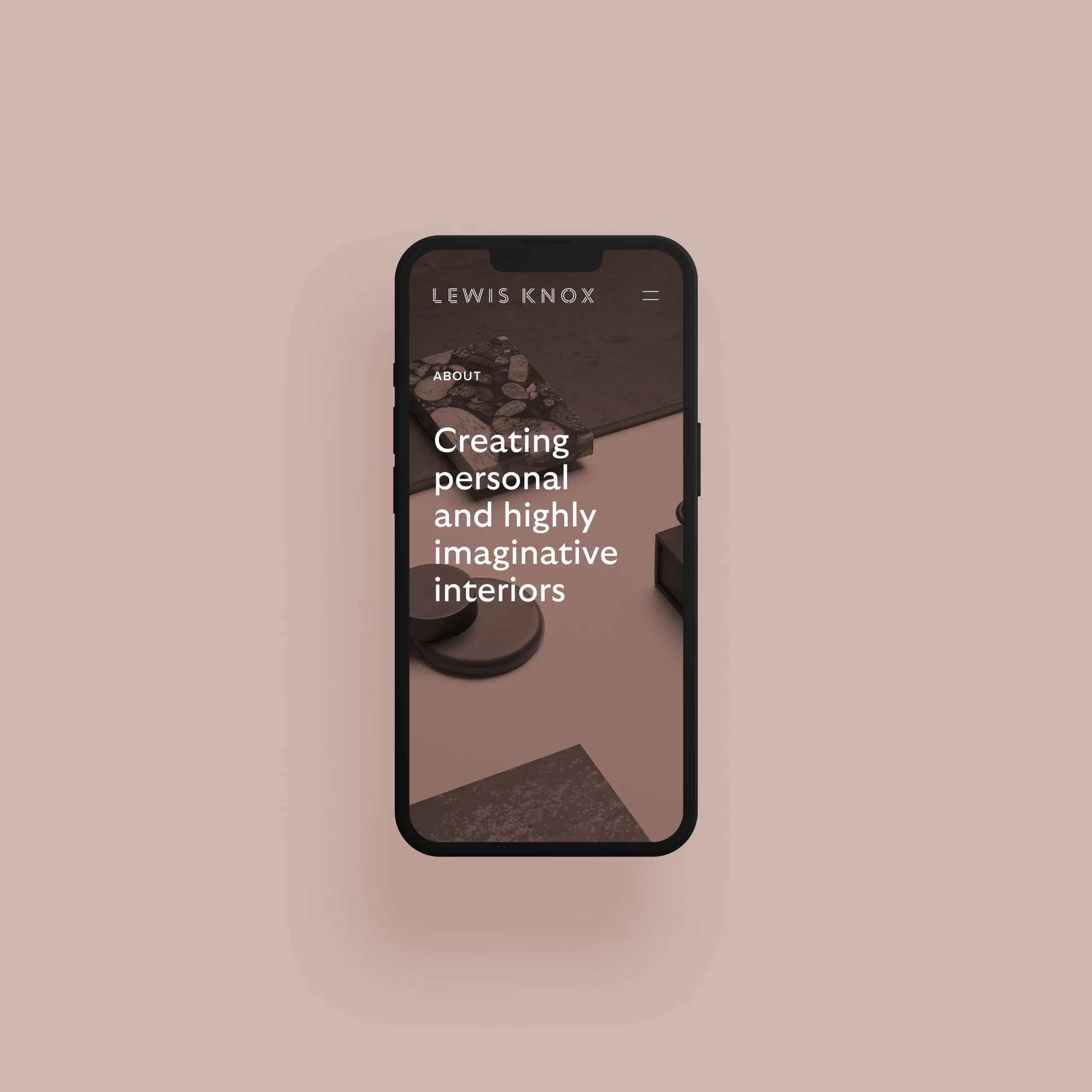 Branding and website for Lewis Knox, residential and commercial interior design firm. We created a bespoke font for the logo, drawn with two lines referencing the two director’s surnames and functioning as a metaphor for partnership. Executed in rose gold foil for printed items to reflect the brand’s high end positioning. An unconventional colour palette is intentionally bright and playful, abandoning stuffy, traditional colours.