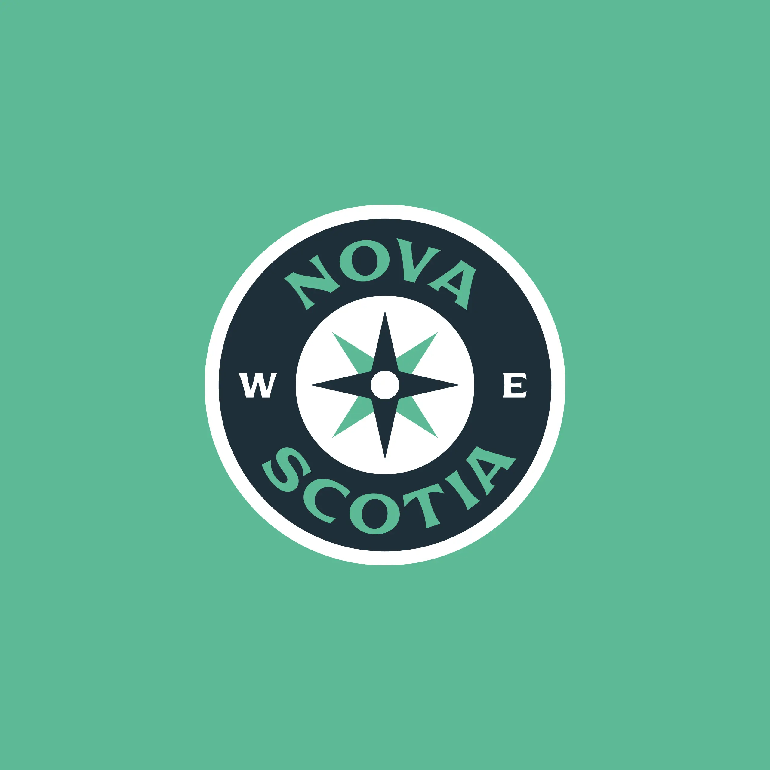 The logo references the maritime heritage of the area with a compass graphic, incorporating the initials for North and South to represent Nova Scotia.